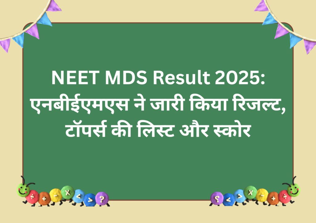 NEET MDS Result 2025: एनबीईएमएस ने जारी किया रिजल्ट, टॉपर्स की लिस्ट और स्कोर (NEET MDS result 2025 jari ho […]