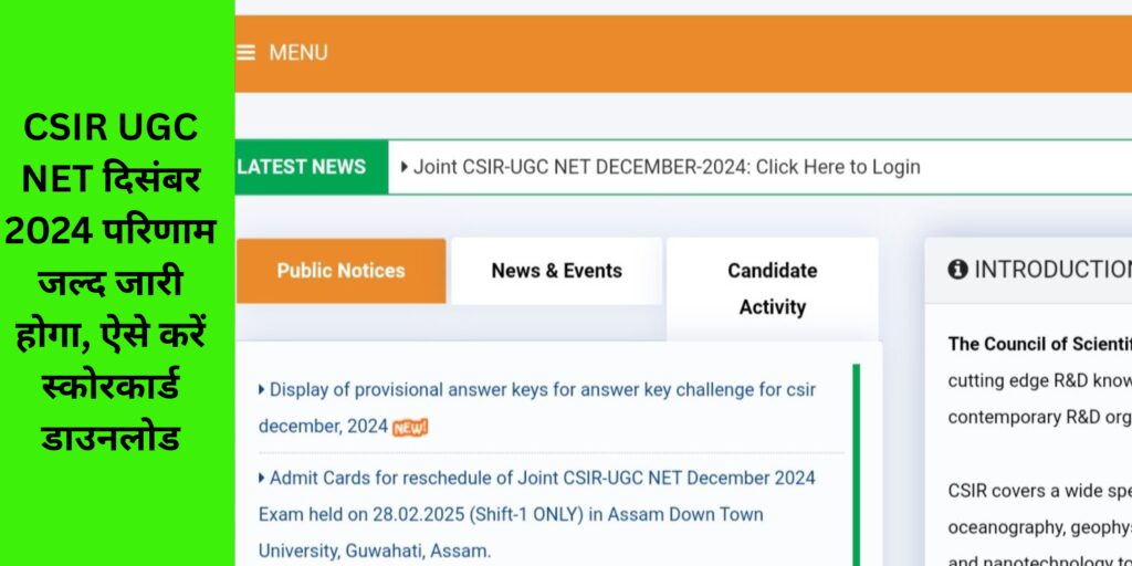 CSIR UGC NET दिसंबर 2024 परिणाम जल्द जारी होगा, ऐसे करें स्कोरकार्ड डाउनलोड (CSIR UGC NET december 2024 parinam jald