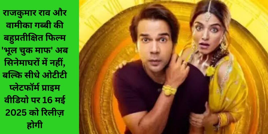 राजकुमार राव और वामीका गब्बी की बहुप्रतीक्षित फिल्म ‘भूल चुक माफ’ अब सिनेमाघरों में नहीं, बल्कि सीधे ओटीटी प्लेटफॉर्म प्राइम