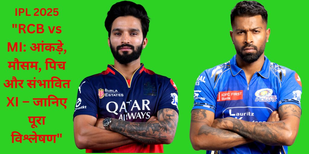 “RCB vs MI: आंकड़े, मौसम, पिच और संभावित XI – जानिए पूरा विश्लेषण”(RCB vs MI Stats, Weather, Pitch and Probable