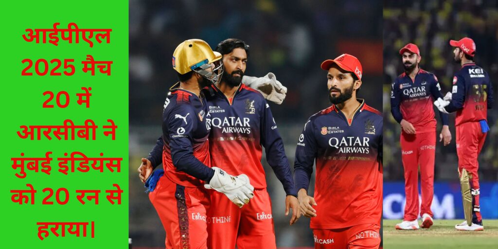 आईपीएल 2025 मैच 20 में आरसीबी ने मुंबई इंडियंस को 20 रन से हराया। (IPL 2025 MATCH 20 RCB ne
