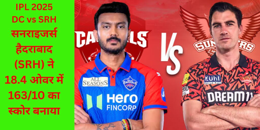सनराइजर्स हैदराबाद (SRH) ने 18.4 ओवर में 163/10 का स्कोर बनाया (IPL 2025 DC vs SRH match mai sunrisers hyderabad