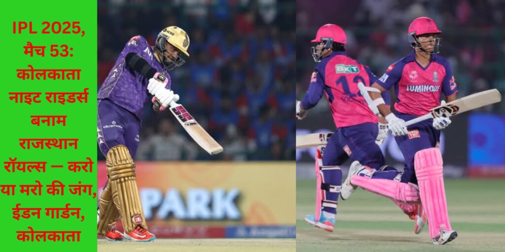 IPL 2025, मैच 53: कोलकाता नाइट राइडर्स बनाम राजस्थान रॉयल्स — करो या मरो की जंग, ईडन गार्डन, कोलकाता (IPL