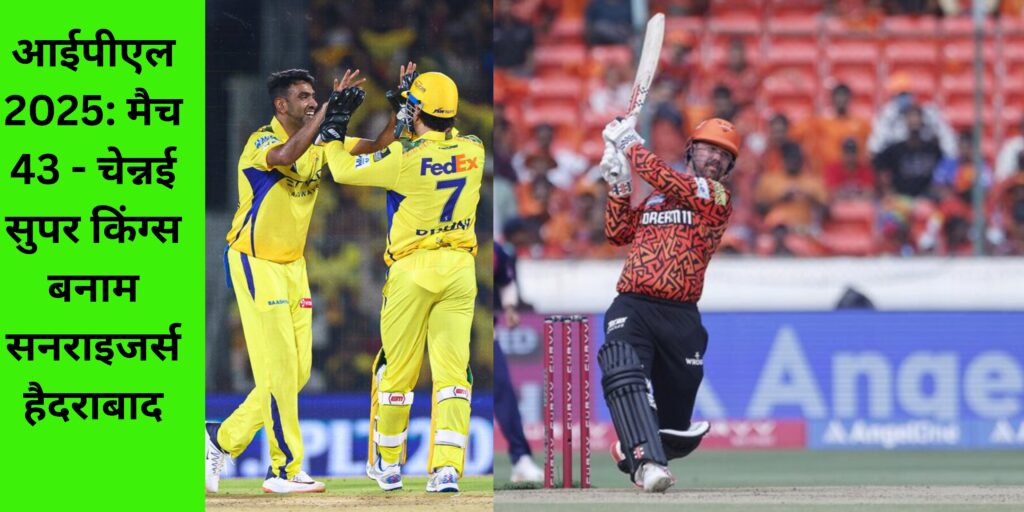 आईपीएल 2025: मैच 43 – चेन्नई सुपर किंग्स बनाम सनराइजर्स हैदराबाद,(IPL 2025 match 43 Chennai Super Kings vs Sunrisers Hyderabad)