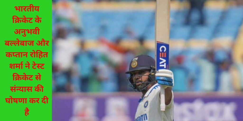 भारतीय क्रिकेट के अनुभवी बल्लेबाज और कप्तान रोहित शर्मा ने टेस्ट क्रिकेट से संन्यास की घोषणा कर दी है, (Indian