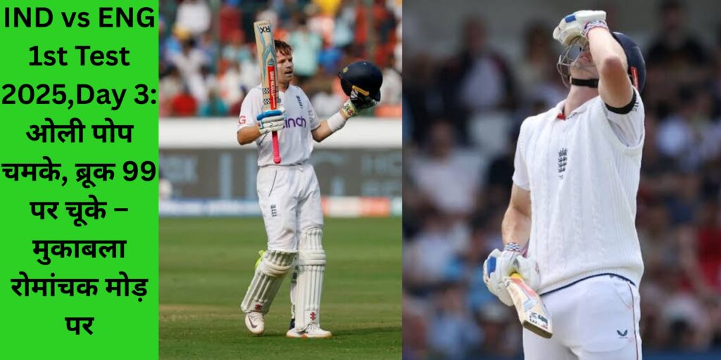 IND vs ENG 1st Test 2025,Day 3: ओली पोप चमके, ब्रूक 99 पर चूके – मुकाबला रोमांचक मोड़ पर(IND vs ENG 1st Test 2025,Day 3,Ollie Pope chamke,Harry Brook 99 run par out,mukabla romanchak more par)