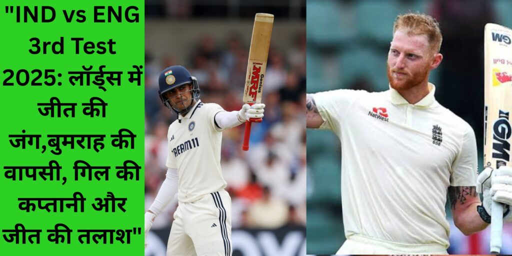 “IND vs ENG 3rd Test 2025: लॉर्ड्स में जीत की जंग,बुमराह की वापसी, गिल की कप्तानी और जीत की तलाश”(IND vs ENG 3rd Test 2025 in Lord’s,Bumrah ki wapsi,Gill ki captancy aur jit ki talash)