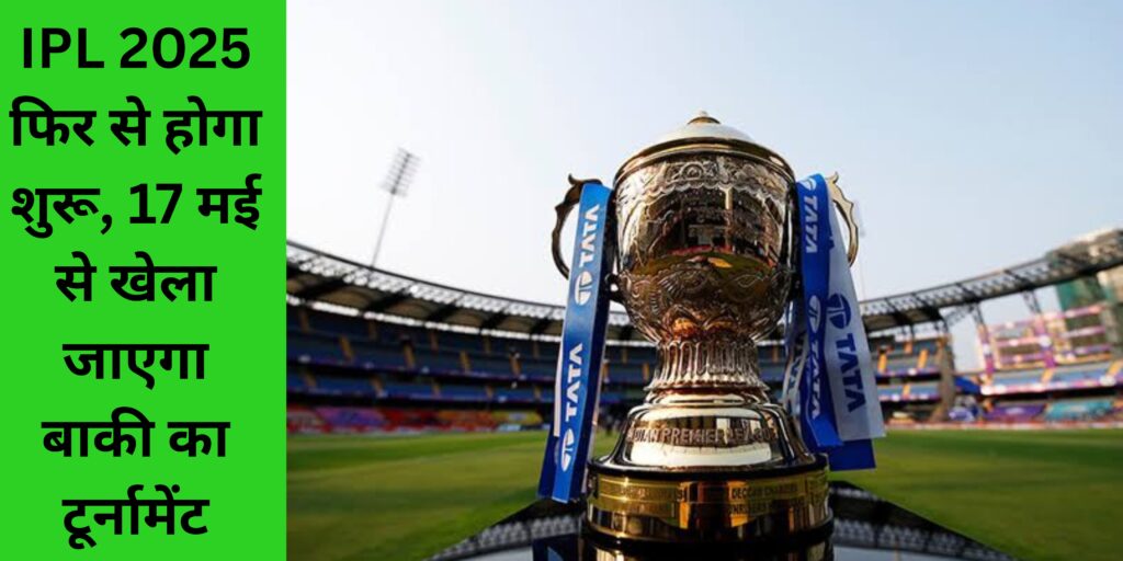 “IPL 2025 फिर से होगा शुरू, 17 मई से खेला जाएगा बाकी का टूर्नामेंट” (IPL 2025 phirse suru hoga 17may se khela jaiga bakika turnament)