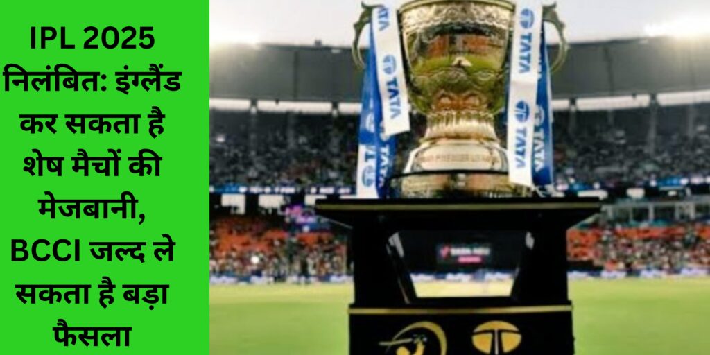 “IPL 2025 निलंबित: इंग्लैंड कर सकता है शेष मैचों की मेजबानी, BCCI जल्द ले सकता है बड़ा फैसला” (IPL 2025 suspended England kar sakta hai ses matcho ki hosting BCCI jald le sakta hai faisla)