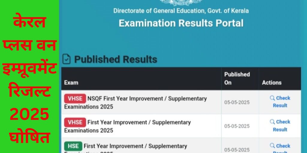 केरल प्लस वन इम्प्रूवमेंट रिजल्ट 2025 घोषित: सभी छात्रों के लिए जरूरी जानकारी (Kerala Plus one Improvement Result 2025 ghoshit kya hai)